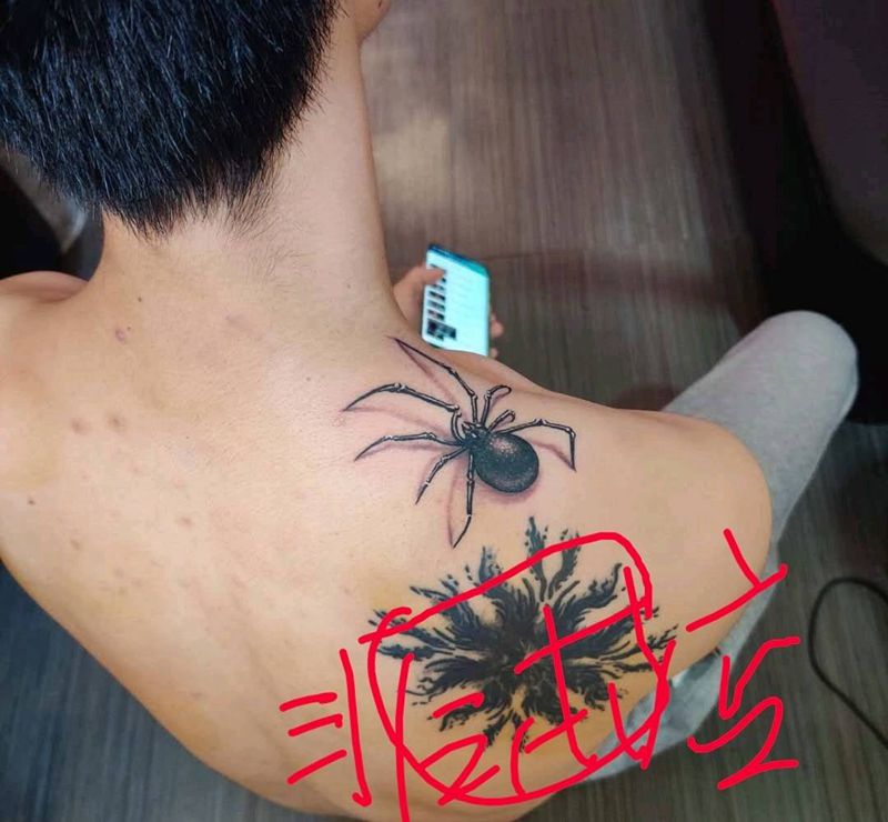 当前位置: 首页 >广东省东莞市纹身店-刺龙堂纹身纹身图案>蜘蛛纹身图片_肩部欧美写实纹身图案