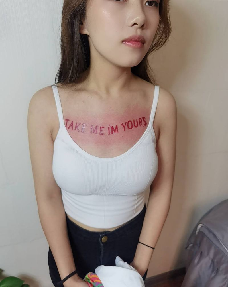 • T关于私处得爱!纹身图片_成品腹部清新字符图腾纹身图案