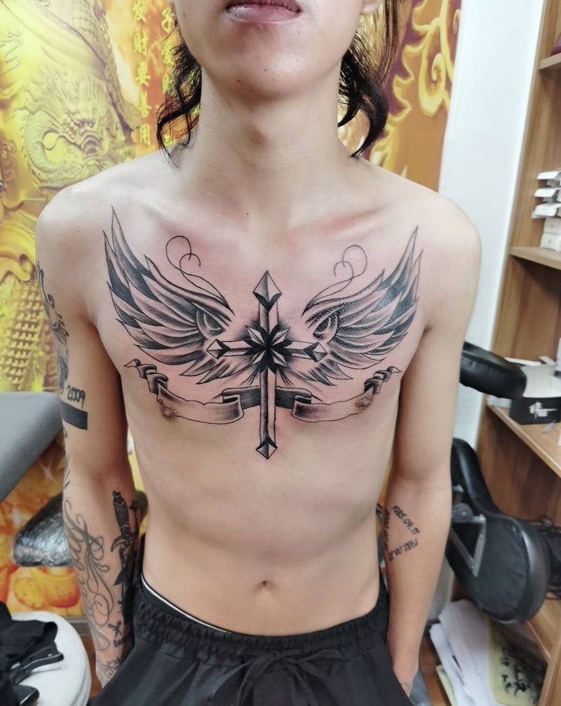 当前位置: 首页 >广东省中山市纹身店-强子刺青纹身图案>天使纹身图片_胸部新传统纹身图案