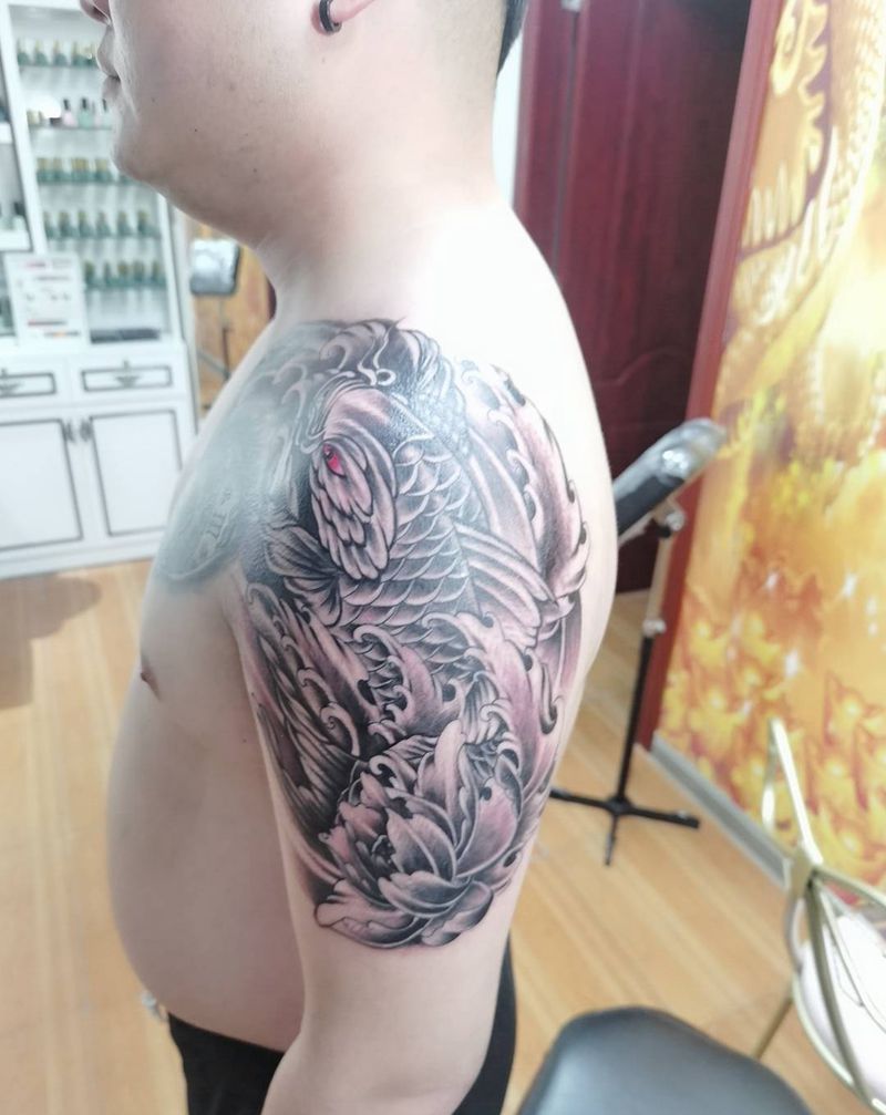 鲤鱼纹身图片_手臂新传统老传统纹身图案