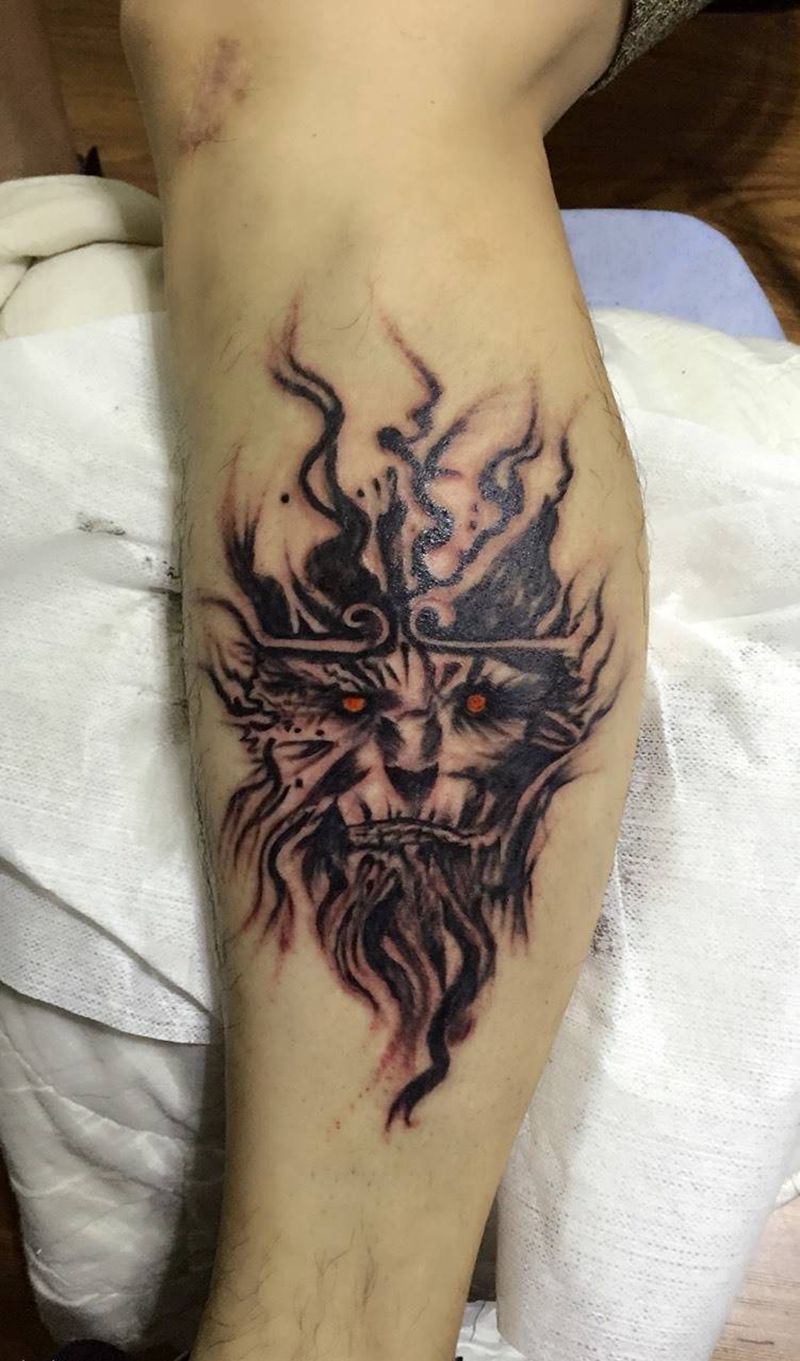 • T网红王老大花腿龙纹身图片_腿部新传统纹身图案