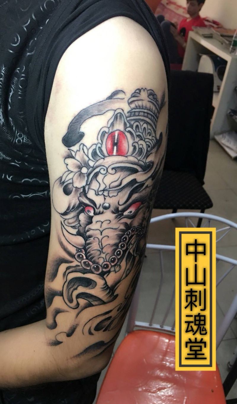 当前位置: 首页 >广东省中山市纹身店-强子刺青纹身图案>象神纹身图片