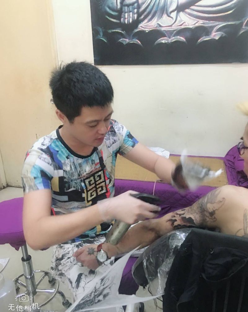 • T网红王老大花腿龙纹身图片_腿部新传统纹身图案