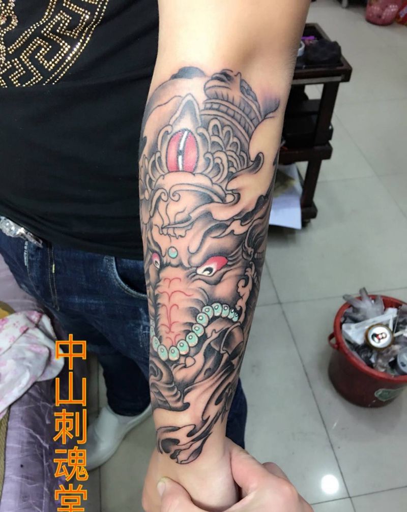 当前位置: 首页 >广东省中山市纹身店-强子刺青纹身图案>小手臂象神纹身图片