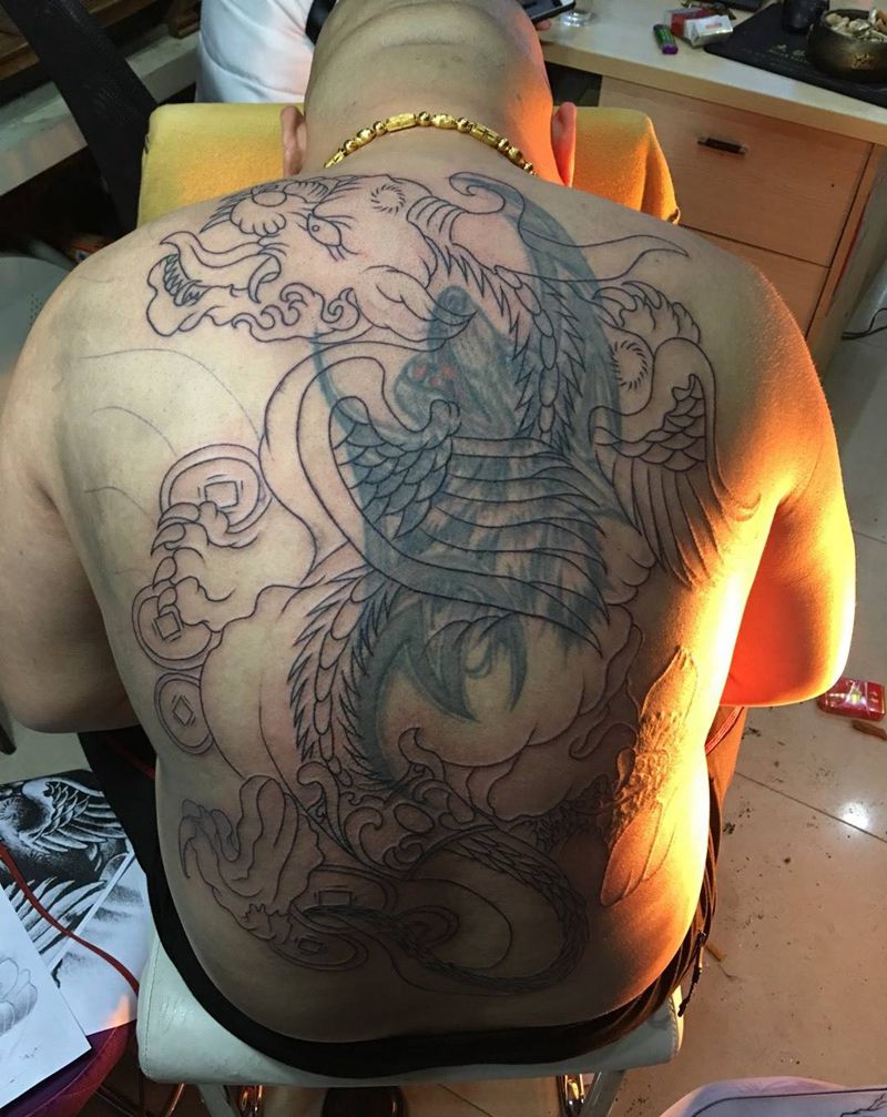 • T云龙九郎纹身图片_背部老传统云龙九郎纹身图案