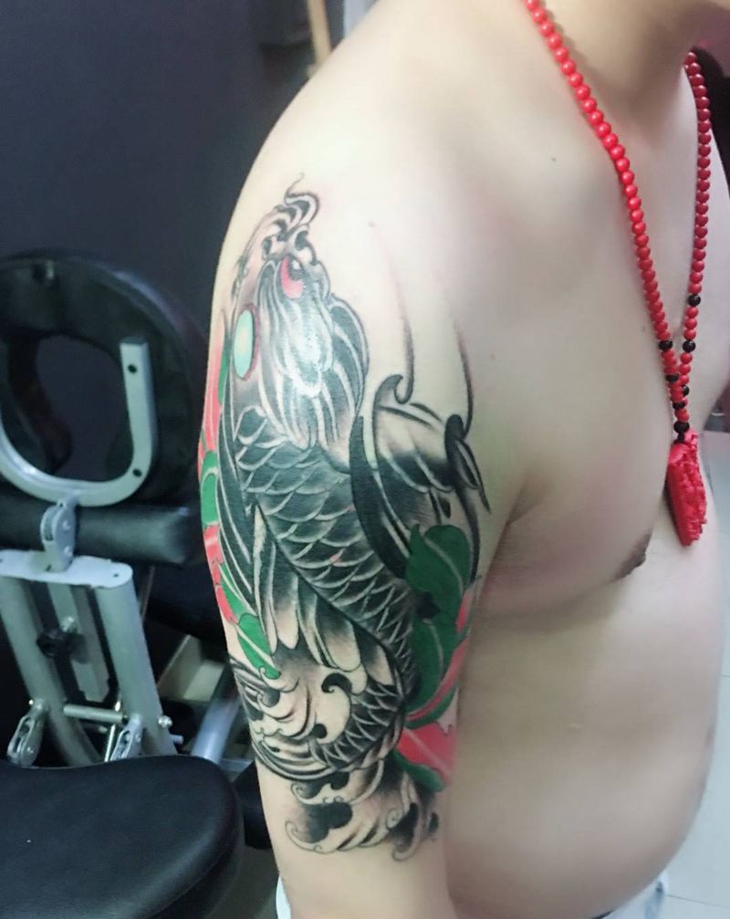 当前位置: 首页 >广东省中山市纹身店-强子刺青纹身图案>鲤鱼覆盖狼头纹身图片