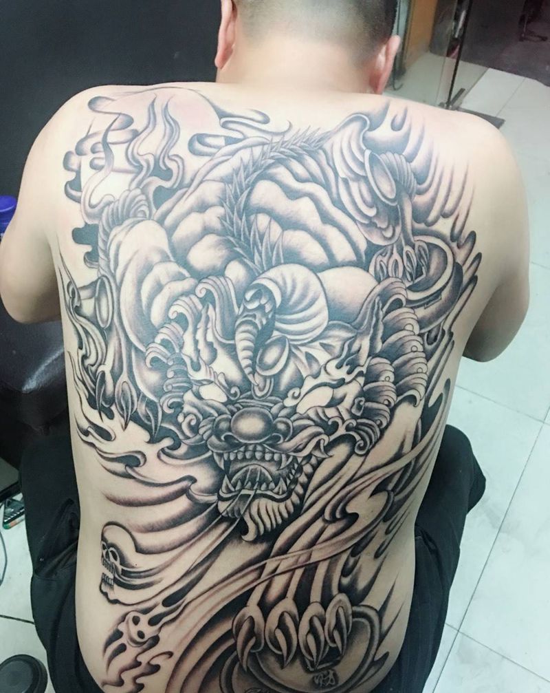 • T云龙九郎纹身图片_背部老传统云龙九郎纹身图案