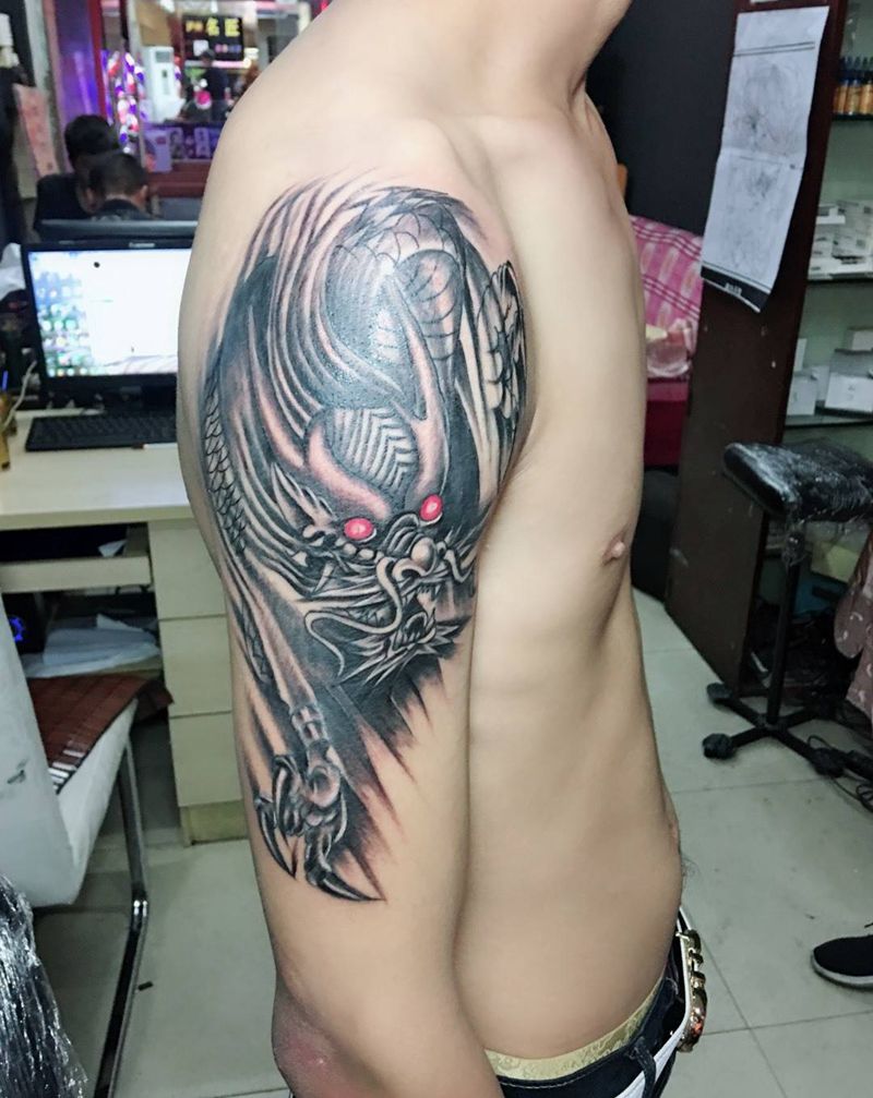当前位置: 首页 >广东省中山市纹身店-强子刺青纹身图案>手臂龙纹身图片