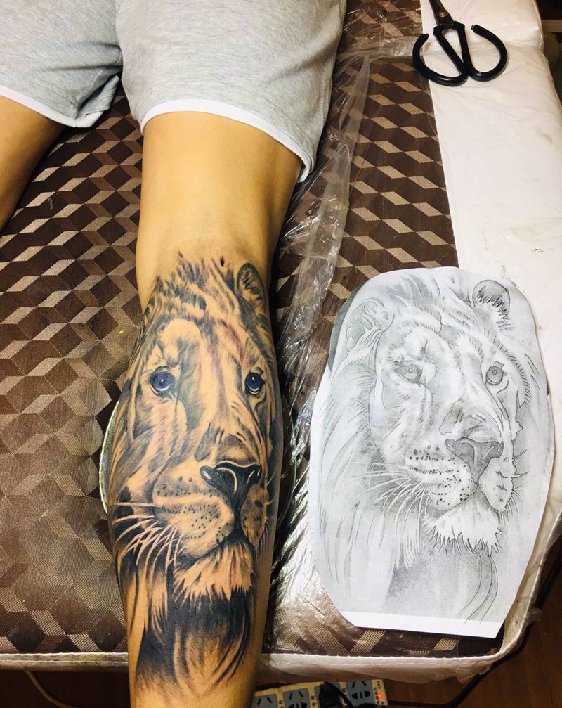 当前位置: 首页 >广东省中山市纹身店-强子刺青纹身图案>狮子纹身图片_腿部纹身图案