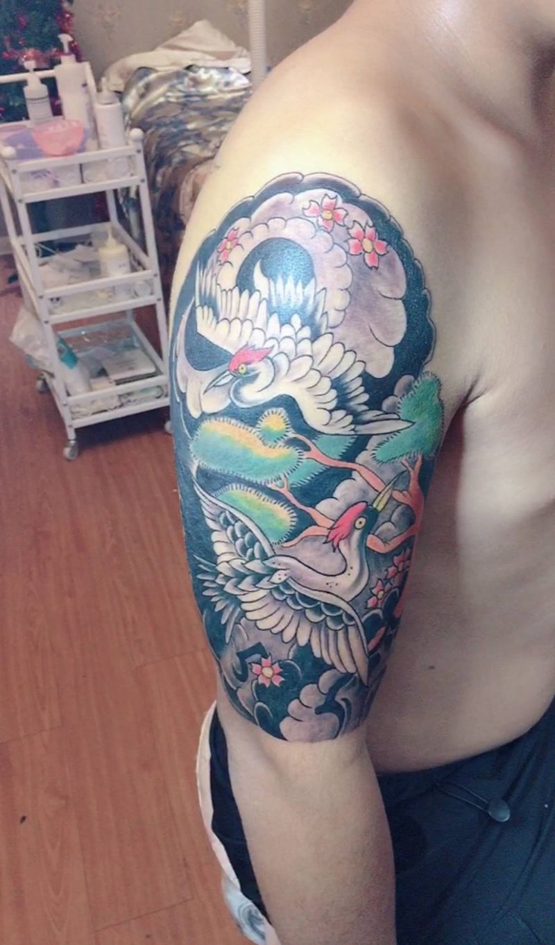 当前位置: 首页 >广东省中山市纹身店-强子刺青纹身图案>仙鹤纹身图片_手臂纹身图案