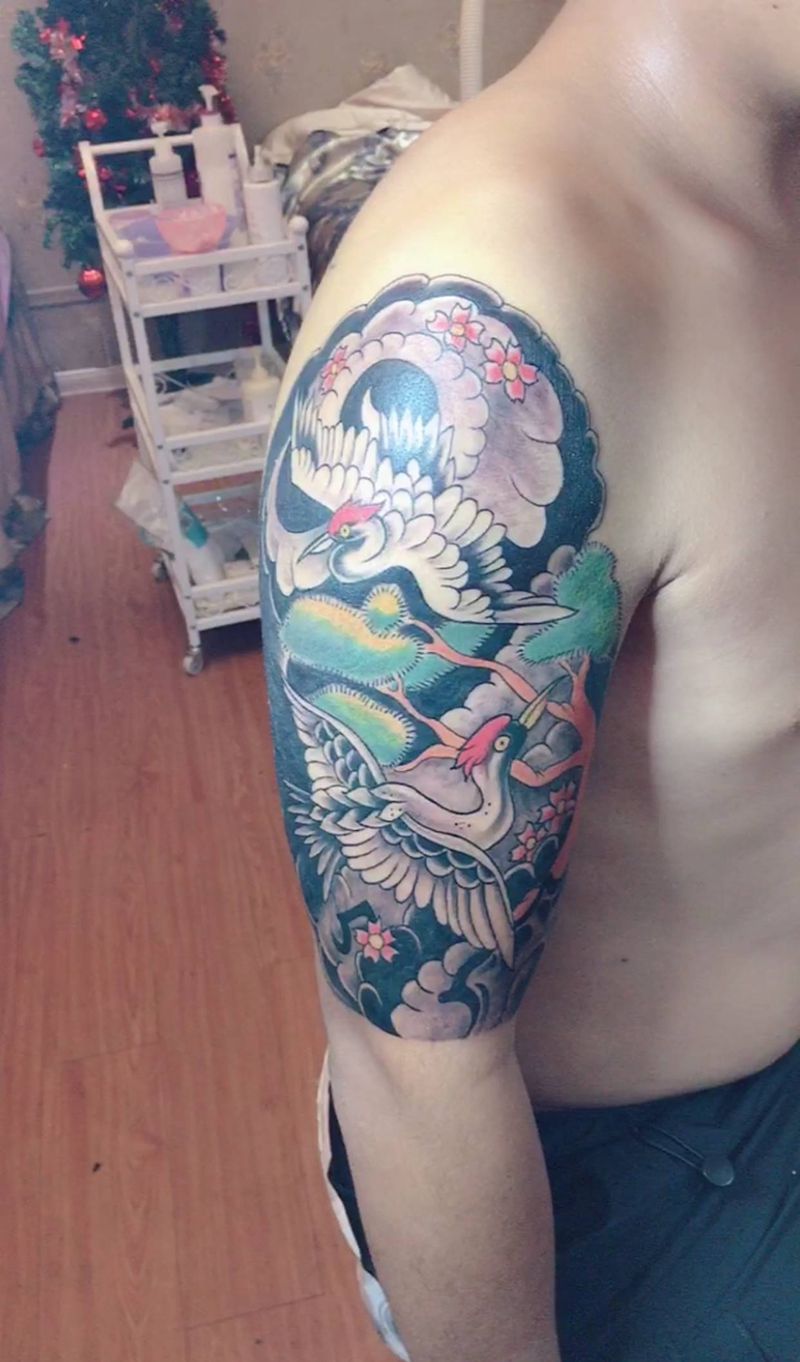 当前位置: 首页 >广东省中山市纹身店-强子刺青纹身图案>仙鹤纹身图片_手臂纹身图案