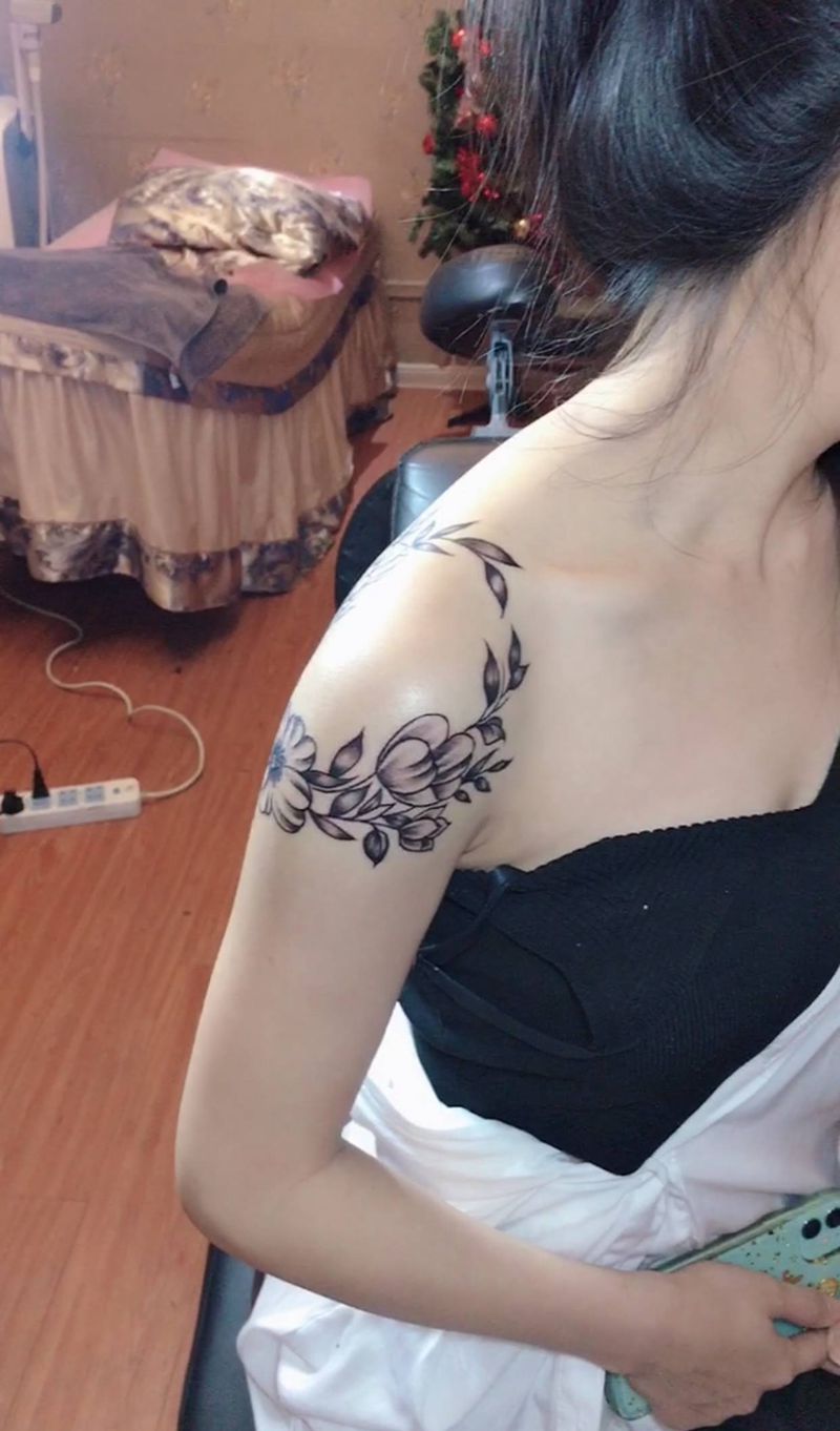 素花纹身图片_肩部纹身图案