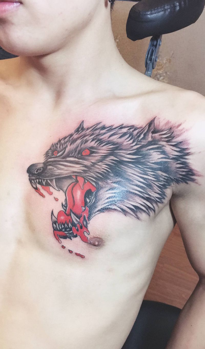当前位置: 首页 >广东省中山市纹身店-强子刺青纹身图案>狼头纹身图片_胸部纹身图案