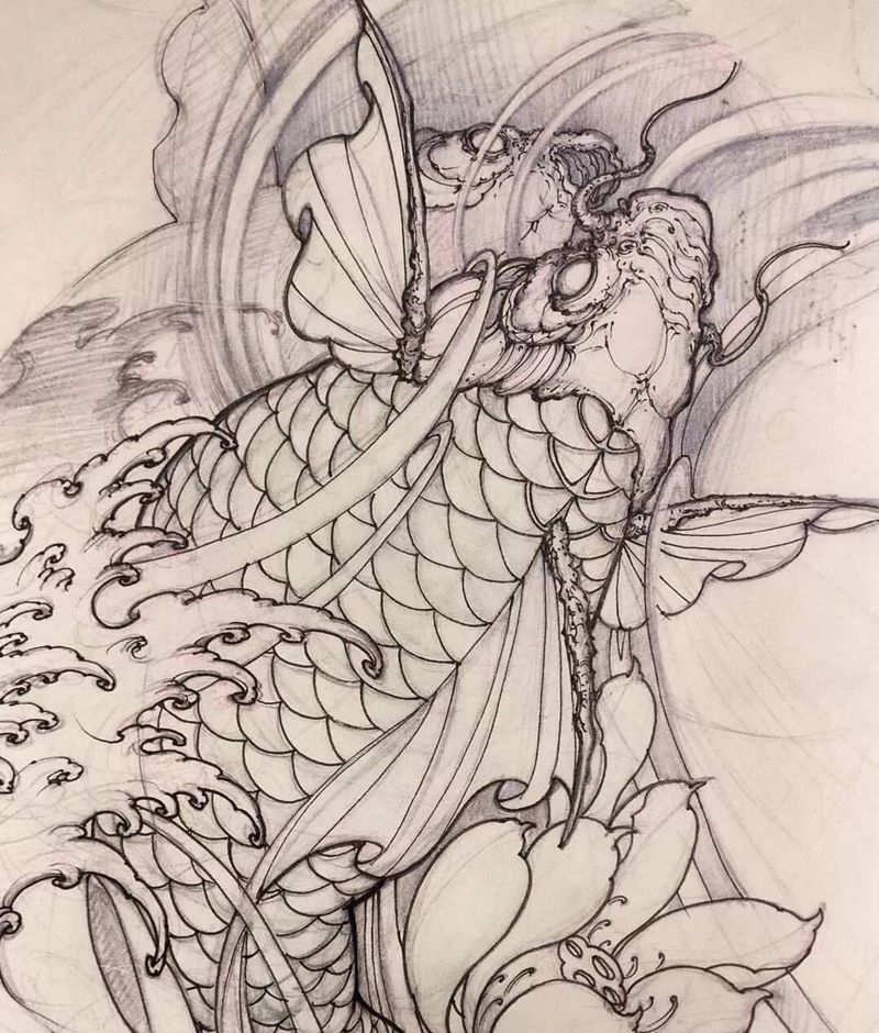 当前位置: 首页 >广东省中山市纹身店-艺龙刺青(大涌分店)纹身图案>鲤鱼线稿纹身图片