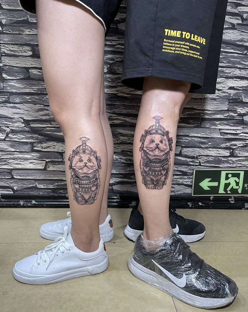 当前位置: 首页 >广东省中山市纹身店-吉刺青纹身图案>武士猫咪驻店作纹身图片_腿部欧美写实点刺纹身图案