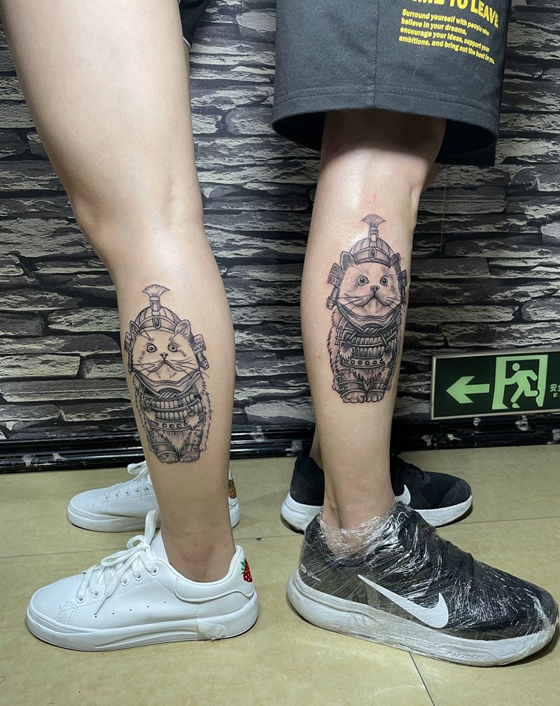 当前位置: 首页 >广东省中山市纹身店-吉刺青纹身图案>武士猫咪驻店作纹身图片_腿部欧美写实点刺纹身图案