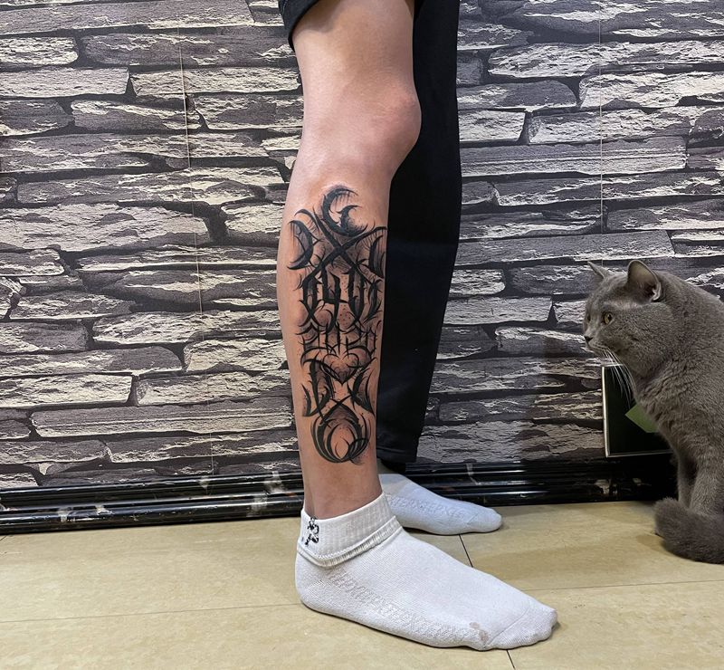 定制情侣花体字纹身图片_腿部花体字纹身图案