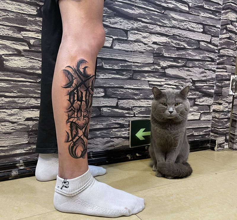 定制情侣花体字纹身图片_腿部花体字纹身图案