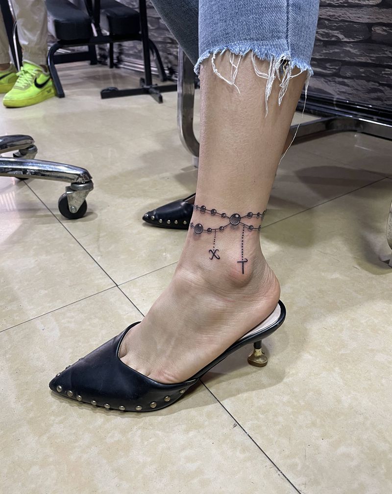 小清新脚链纹身图片_脚部水墨纹身图案