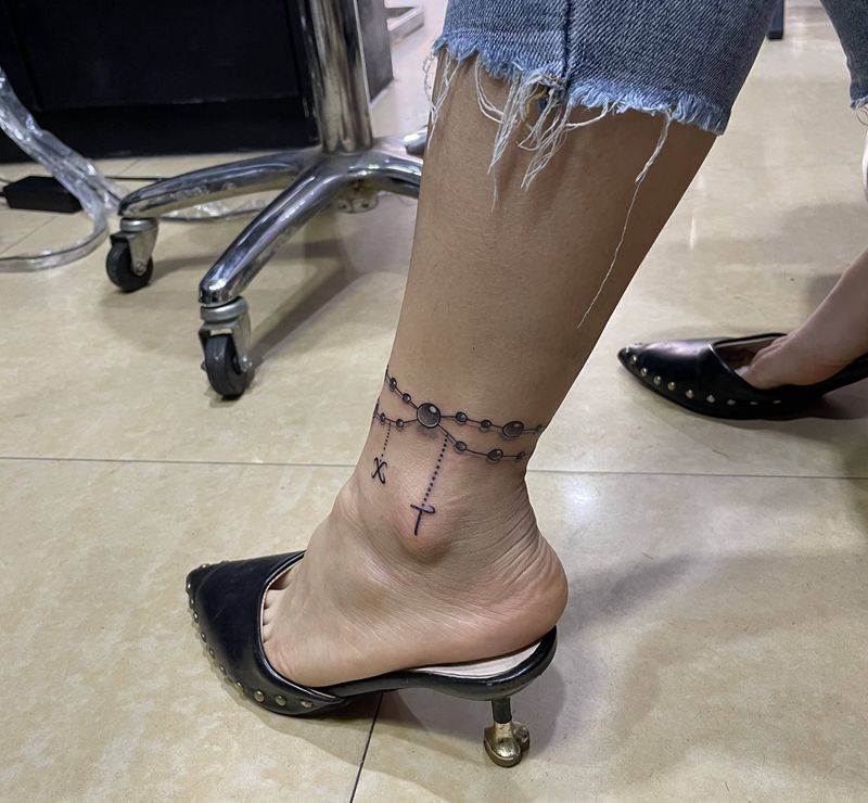 小清新脚链纹身图片_脚部水墨纹身图案