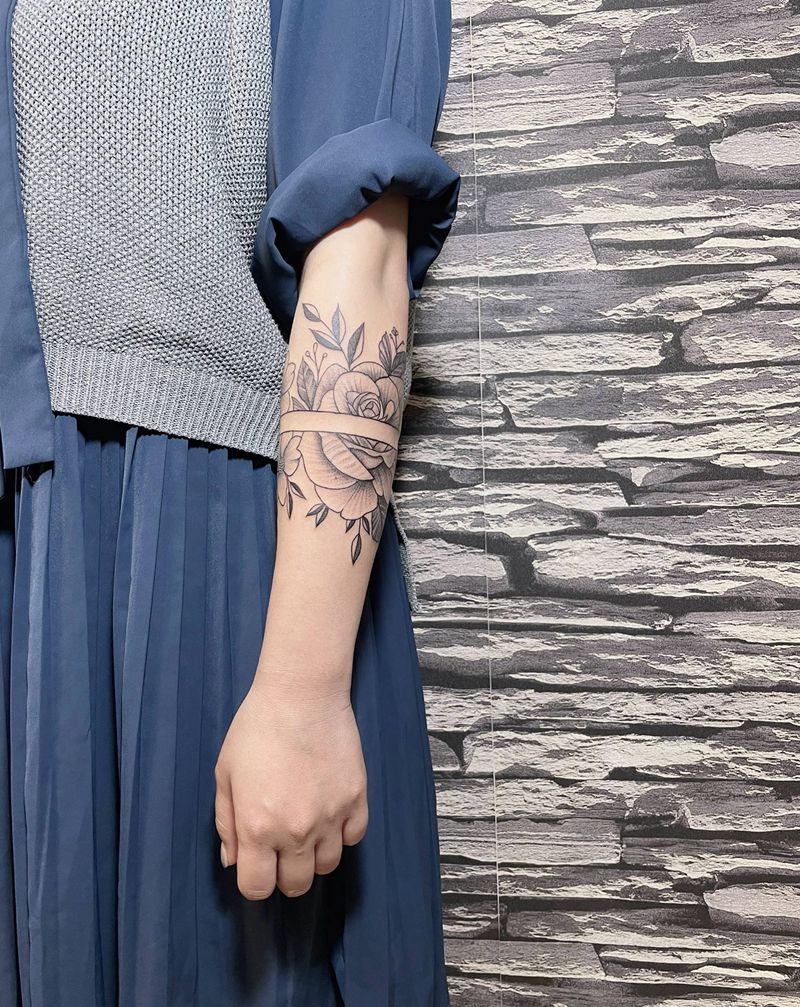 当前位置: 首页 >广东省中山市纹身店-吉刺青纹身图案>玫瑰素花环纹身图片_手臂点刺纹身图案