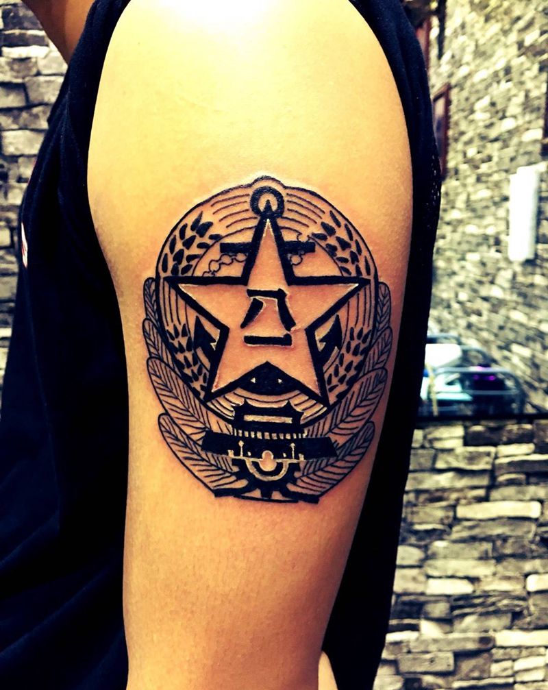 当前位置: 首页 >广东省中山市纹身店-吉刺青纹身图案>军徽纹身图片