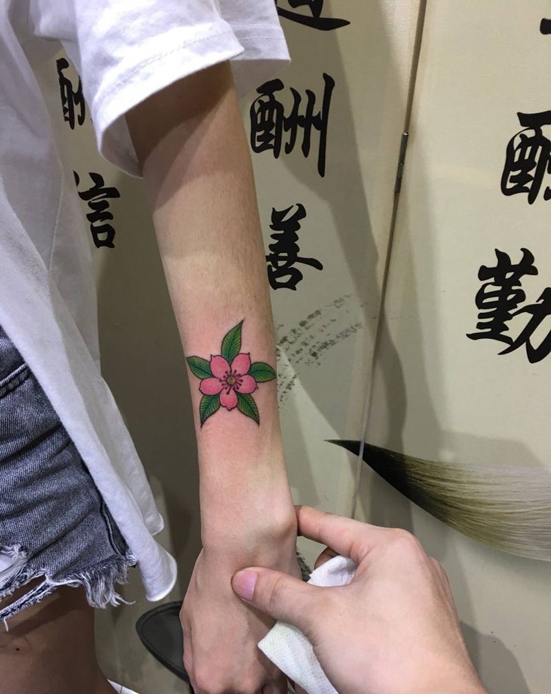 当前位置: 首页 >广东省中山市纹身店-吉刺青纹身图案>樱花遮盖黑痣纹身图片