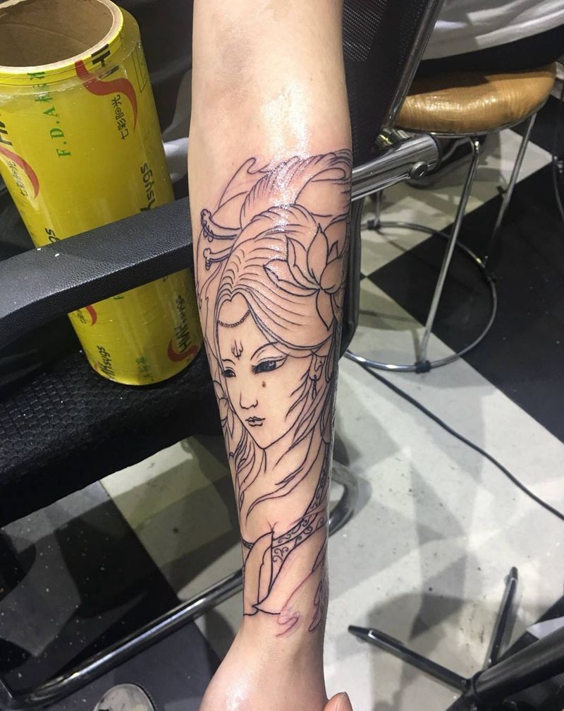 当前位置: 首页 >广东省中山市纹身店-吉刺青纹身图案>艺妓线条纹身图片