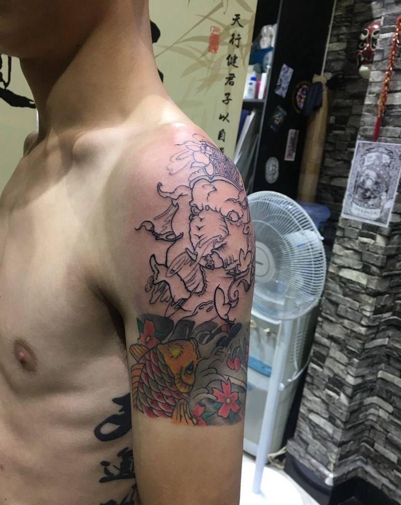 当前位置: 首页 >广东省中山市纹身店-吉刺青纹身图案>象神线条纹身图片