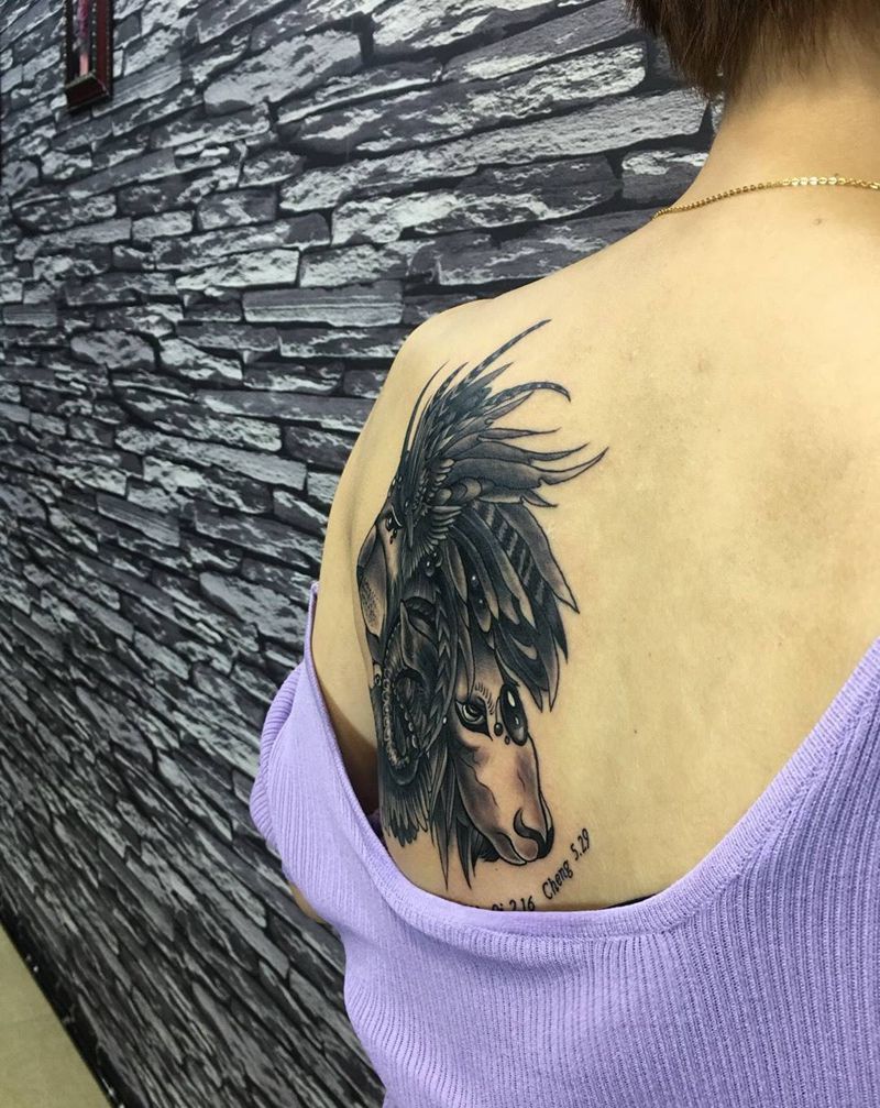 • 纹身吧推荐的披肩图腾半胛纹身图案作品展示