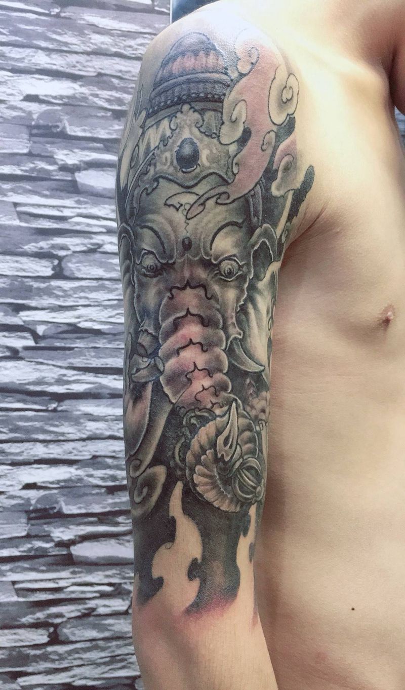 当前位置: 首页 >广东省中山市纹身店-吉刺青纹身图案>黑灰象神纹身图片