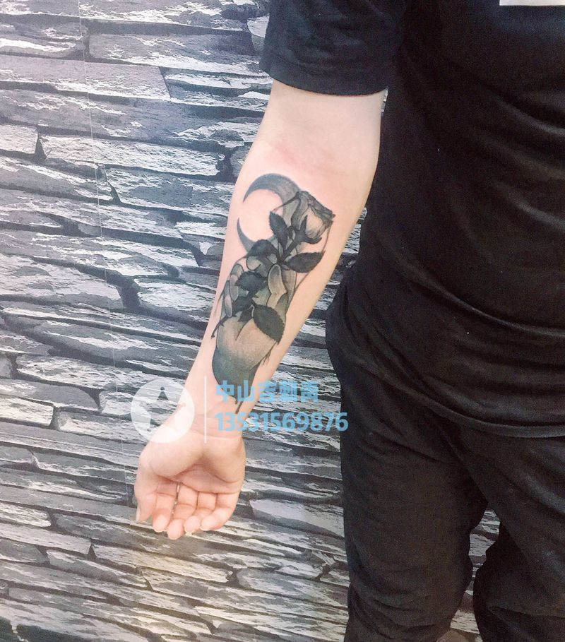 当前位置: 首页 >广东省中山市纹身店-吉刺青纹身图案>暗黑点刺手持玫瑰纹身图片_手臂手部点刺纹身图案