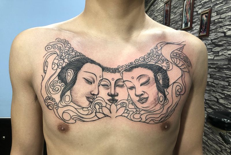 当前位置: 首页 >广东省中山市纹身店-吉刺青纹身图案>三面佛花胸纹身图片_胸部纹身图案
