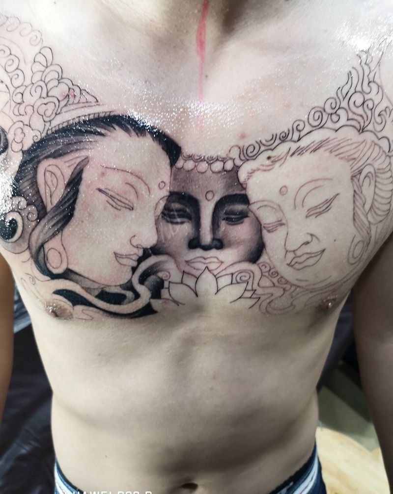 当前位置: 首页 >广东省中山市纹身店-吉刺青纹身图案>三面佛花胸纹身图片_胸部纹身图案
