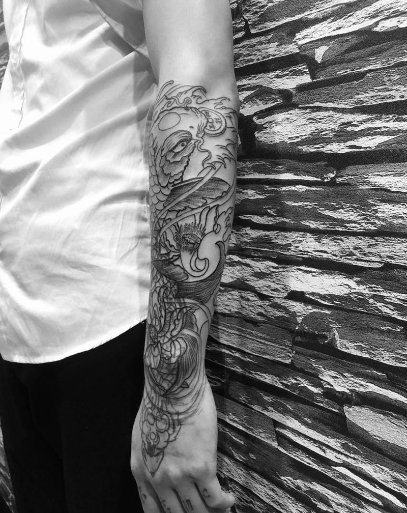 鲤鱼遮盖纹身图片_手部新传统纹身图案