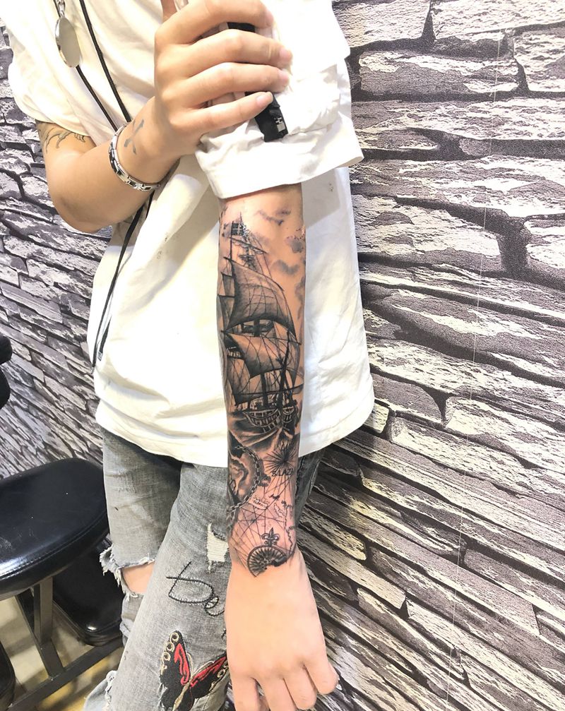 当前位置: 首页 >广东省中山市纹身店-吉刺青纹身图案>欧美帆船纹身图片_手臂手部欧美写实纹身图案