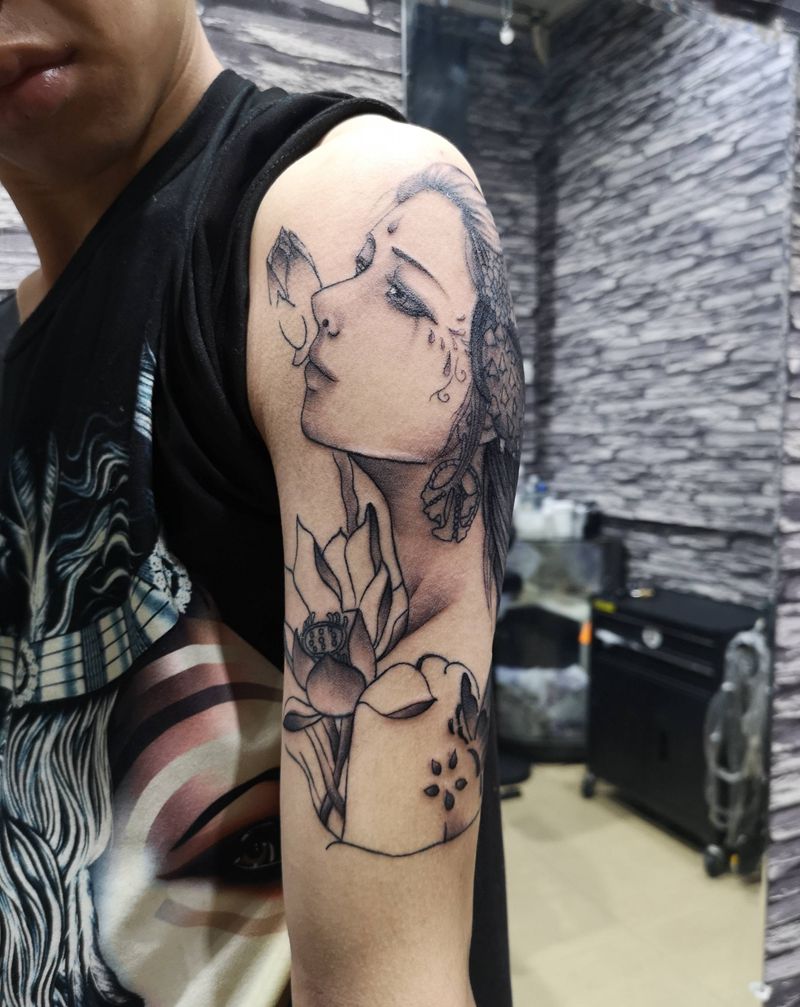 • 女性大花胸纹身_43张霸气漂亮的女性大花胸纹身图案作品