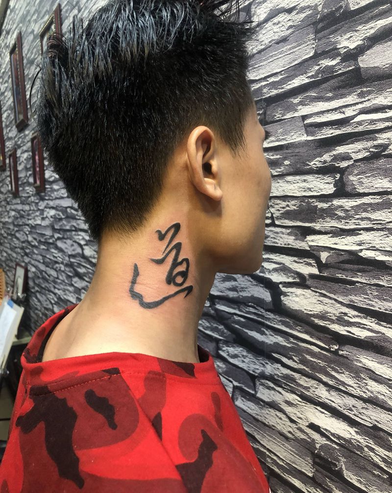 道纹身图片_颈部水墨纹身图案