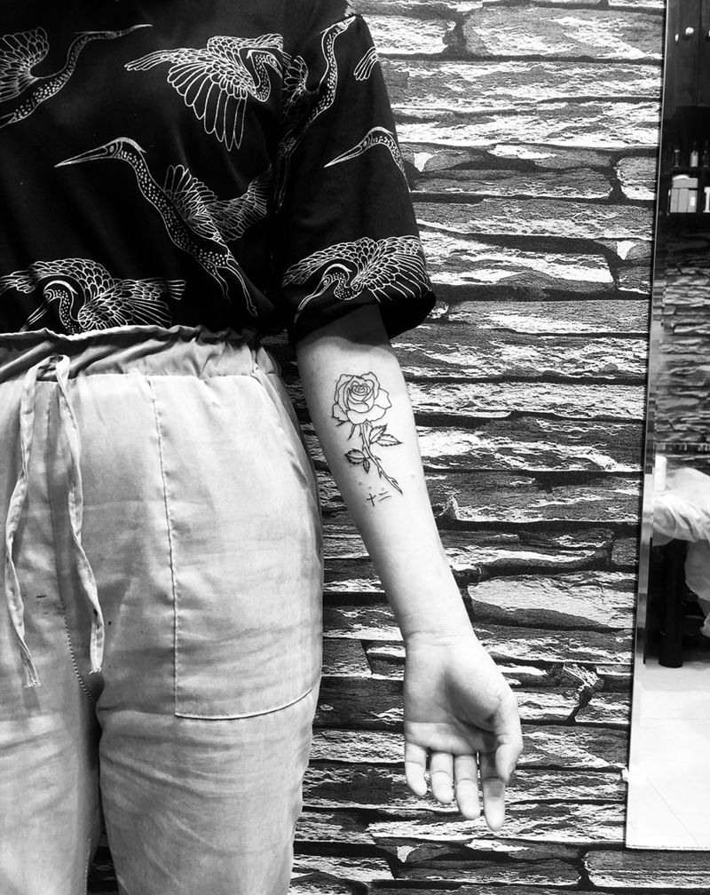 当前位置: 首页 >广东省中山市纹身店-吉刺青纹身图案>玫瑰线条纹身图片_手臂新传统Old School纹身图案
