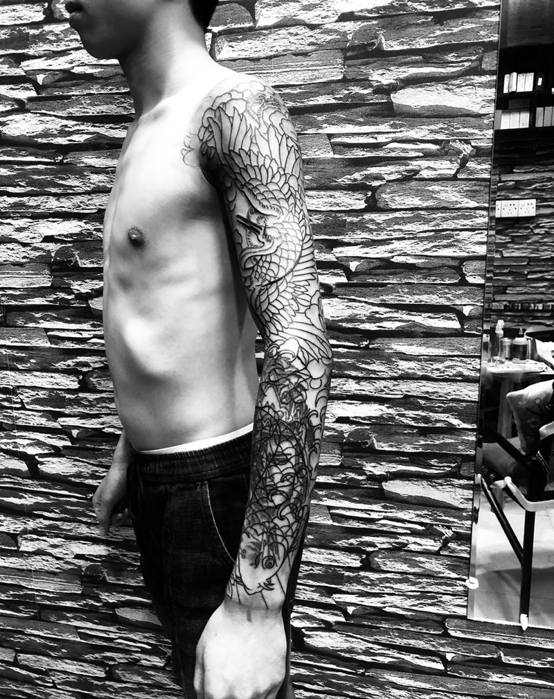 当前位置: 首页 >广东省中山市纹身店-吉刺青纹身图案>老传统花臂线条,遮盖纹身图片_手臂老传统纹身图案
