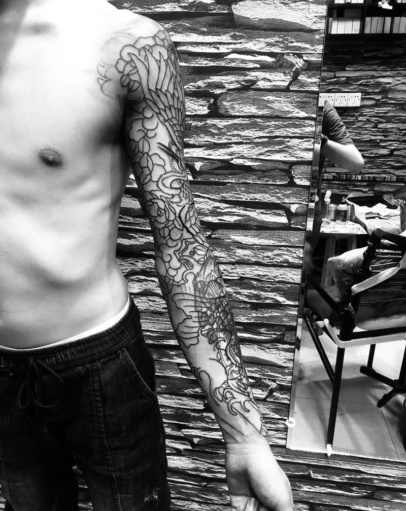 当前位置: 首页 >广东省中山市纹身店-吉刺青纹身图案>老传统花臂线条,遮盖纹身图片_手臂老传统纹身图案