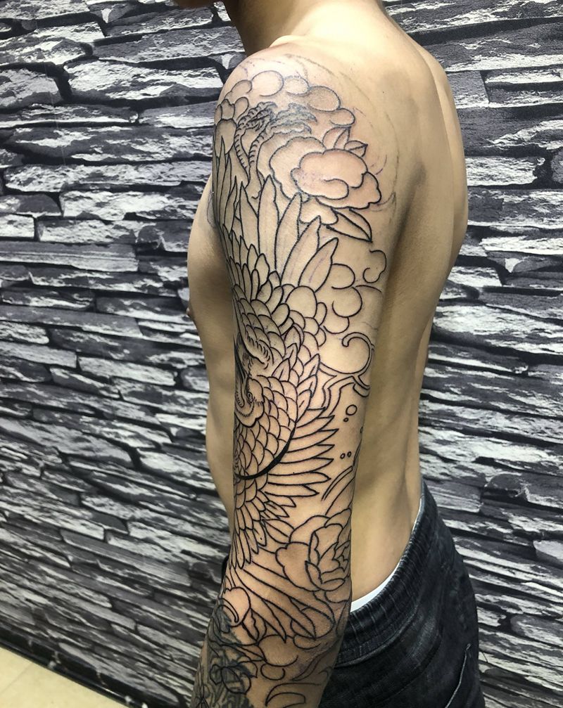 当前位置: 首页 >广东省中山市纹身店-吉刺青纹身图案>老传统花臂线条,遮盖纹身图片_手臂老传统纹身图案