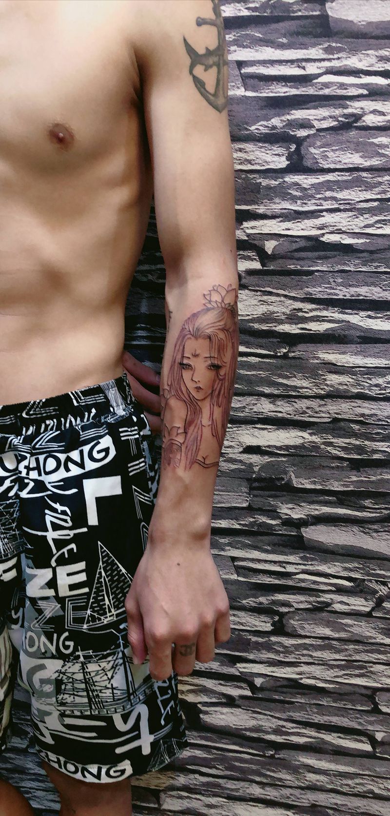 当前位置: 首页 >广东省中山市纹身店-吉刺青纹身图案>艺妓线条纹身图片_手臂新传统纹身图案