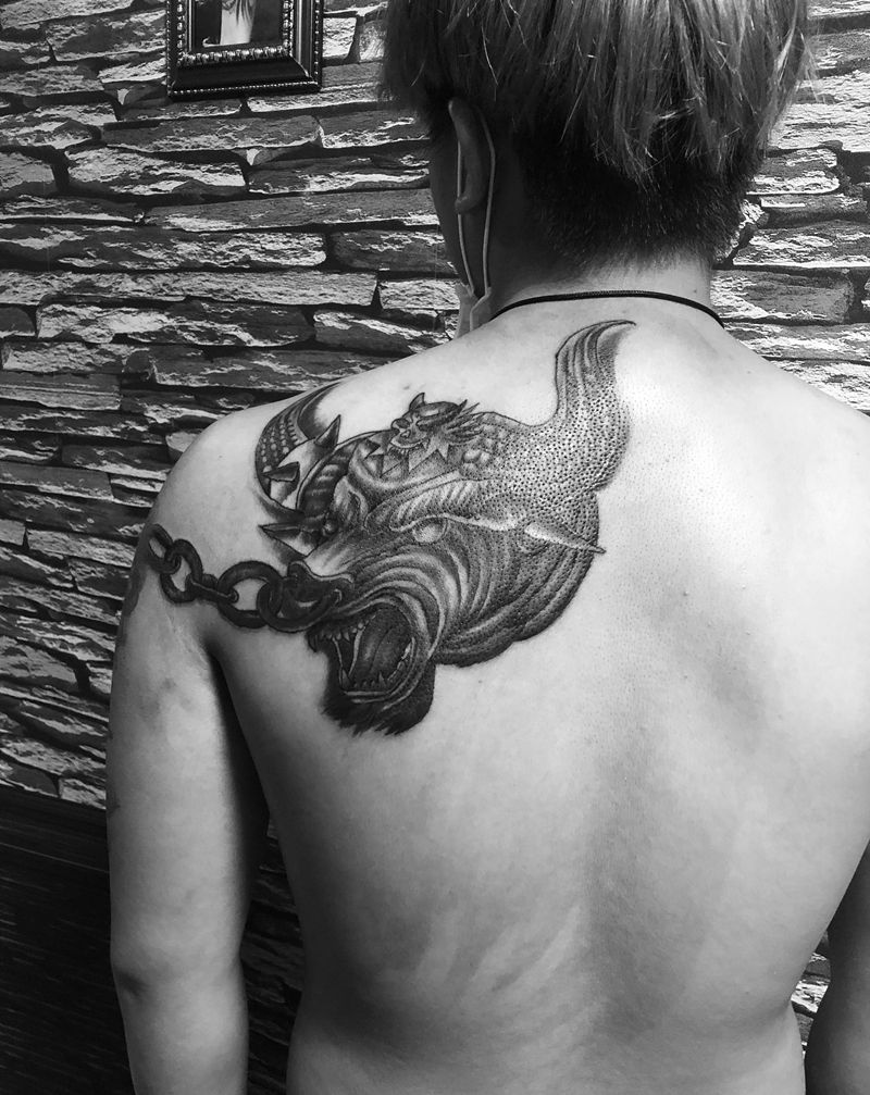 • 纹身吧推荐的披肩图腾半胛纹身图案作品展示