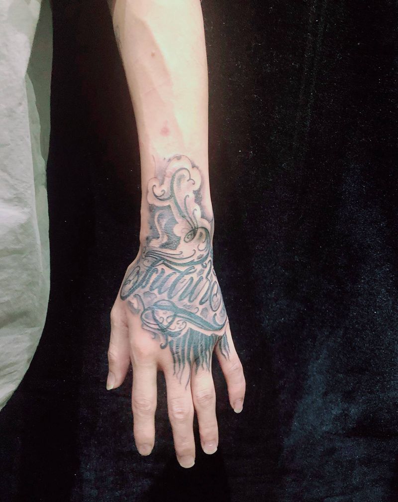 当前位置: 首页 >广东省中山市纹身店-吉刺青纹身图案>花体字手背纹身图片_手部花体字纹身图案