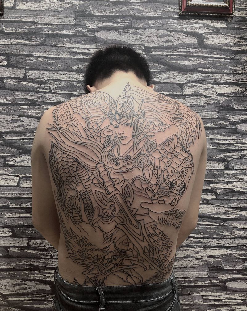 赵子龙如枪出纹身图片_背部新传统纹身图案