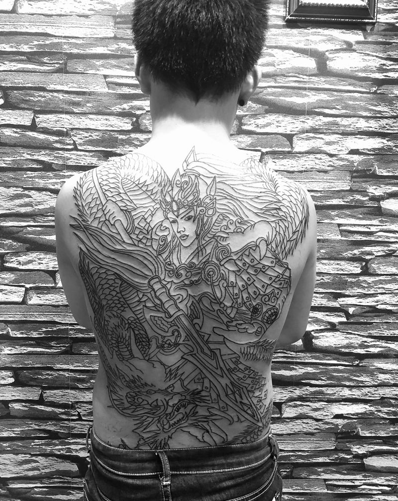 赵子龙如枪出纹身图片_背部新传统纹身图案