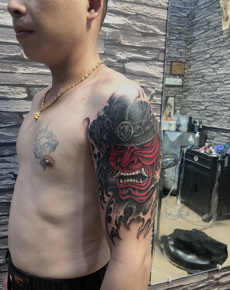 当前位置: 首页 >广东省中山市纹身店-吉刺青纹身图案>鬼武士遮盖旧纹身纹身图片_手臂新传统纹身图案