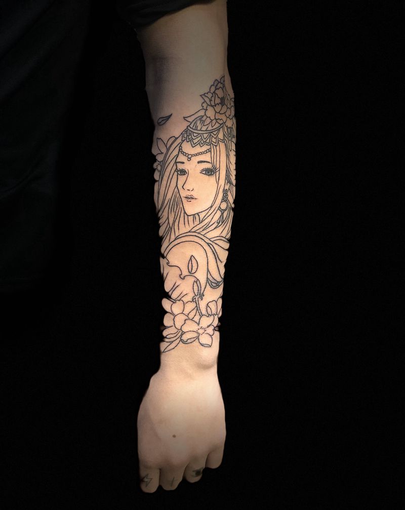 当前位置: 首页 >广东省中山市纹身店-吉刺青纹身图案>艺妓线条纹身图片_手臂新传统纹身图案