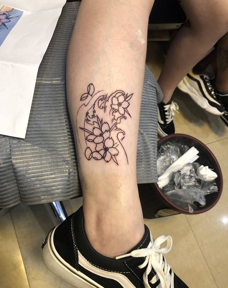 • T网红王老大花腿龙纹身图片_腿部新传统纹身图案